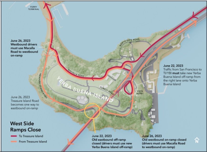 Take the Bay Bridge eastbound (I-80) and exit mid bridge after the tunnel on Yerba Buena Island. After a loop, you will emerge on Macalla Macalla Drive which winds around the north side of Yerba Buena Island to the stop sign. Turn Right at the stop sign, past the yacht harbor, then straight on Treasure Island Rd (the bayfront on your left) then right on Clipper Cove Way, then left on Seven Seas Ave, in 1/2 mile turn right on 9th and after two block we are on the Left. Please use Google maps for driving directions.